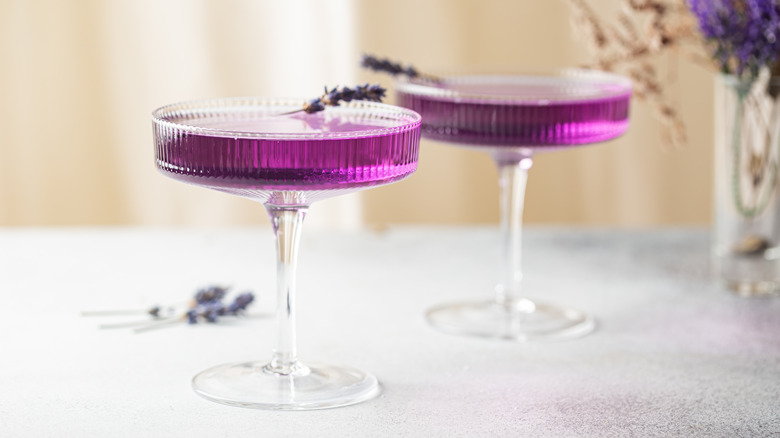 There are few colors more interesting than vivid violet, and there are a number of ways to add a pop of purple to your drink. It's not uncommon to combine blue curaçao with grenadine or cranberry juice to create purple cocktails, or to use the blackcurrant-flavored Creme de Cassis, but these have notably fruity tastes. If you're not after an overtly saccharine cocktail, these ingredients might not work out. However, Creme de Violet doesn't pose this issue, and while its floral flavoring won't work in every cocktail, it's perfect for adding a more delicate purple coloring to drinks.