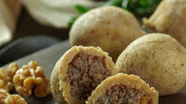 Whether it be meat-stuffed pastries or grilled skewers, meat is a popular feature at Kurdish Nowruz picnics. In particular, kubeh is a favorite to prepare for the occasion. The preparation of this dish, which is made from meat stuffed into ground bulgur dumplings, can be a time-consuming affair, but it's a must for festive celebrations.