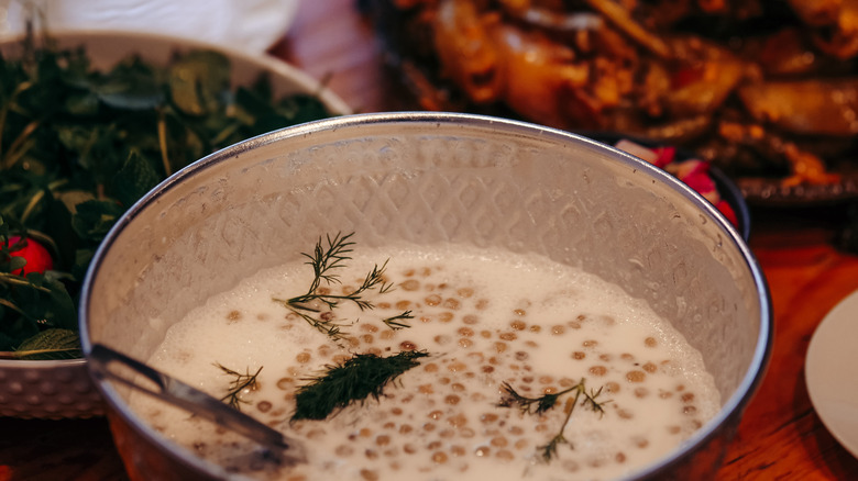 Pour some in a glass and enjoy alongside your meal. The savory and slightly sour flavors may be surprising to palates new to the drink, but mastaw is a great accompaniment to Nowruz feasts — and it gives you room to go back for seconds or thirds.