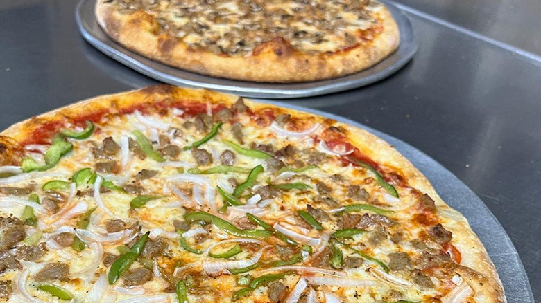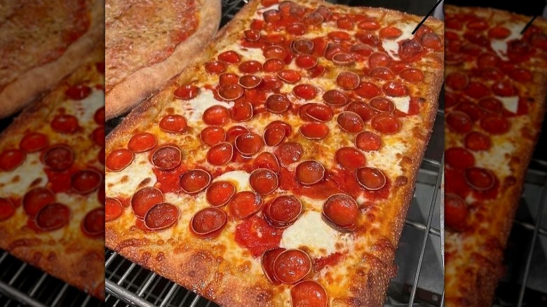 The star of Naked City Pizza's show is the sheet pizzas, which come in Full Size (24 slices), half, and ¼. The Naked City Pizza is a great place to start and features its signature sauce, plus mozzarella, pepperoni, sausage, onion, roasted sweet peppers, and green olives. There's the DDD, named for its appearance on "Diners, Drive-Ins, and Dives," which comes topped with white garlic sauce, spinach, grandma's meatballs, mozzarella, and ricotta. And if this is all sounding a bit meat-heavy, Naked City Pizza has several veggie sheet pizzas and a large selection of vegan pizzas, as well.