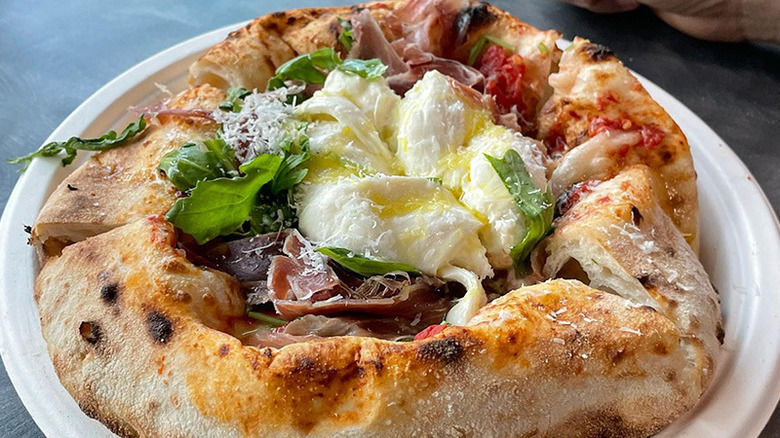 This incredible Vegas pizzeria is one of the best on this list, commanding the endorsements of members of the Tasting Table team, high reviews on online booking platforms, and return customers galore. The crust and dough are a defining factor in Solamente's pizza profile, going so far as to make its slogan "Trust in Crust." The special Italian dough is fermented for a minimum of two days before hitting the oven.