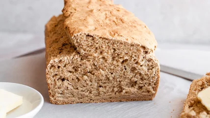 Since your Guinness will bring plenty of yeast, you don't need any extra to make this Irish beer bread. The recipe has a relatively short ingredient list, which just includes flour, baking powder, brown sugar, vanilla extract, salt, salted butter, and the brew itself. What you will need, however, is for the bottle of beer to be at room temperature before you start mixing. And while we, of course, prefer Guinness here, you can replace it with your favorite stout beer if you'd prefer.