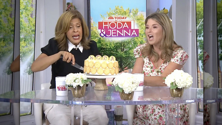 Even for experienced dessert chefs, boxed cake mix is a delicious and easy alternative to making a cake from scratch. Plus, there are infinite ingredients you can add to boxed cake mix to give it a personal, homemade touch. One recipe, requiring just two ingredients, was revealed on "Today" when host Hoda Kotb's co-workers presented her with a yellow box birthday cake embellished with Ritz crackers.