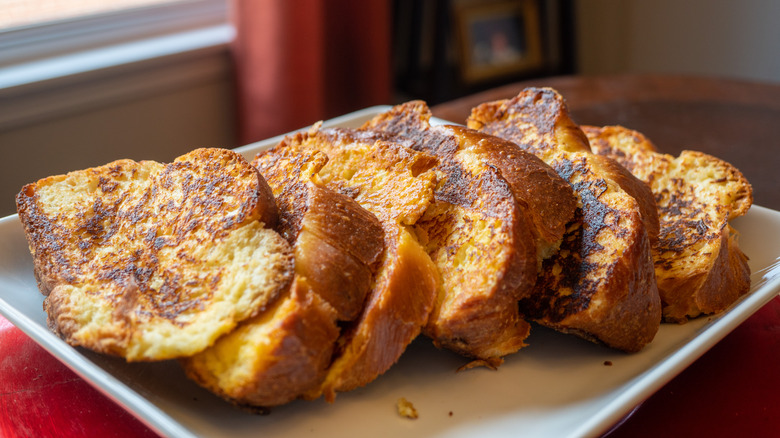 This is the breakfast hybrid you didn't know that you needed. Instead of just dragging your day-old bread slices through an egg and milk custard, flopping them on a griddle, and calling it a day, you can add a delectable element to your French toast slices by coating them in a layer of pancake batter. The pancake batter eliminates the need for an additional custard since it already has eggs and milk. Plus, the pancake batter will act as a protective element and prevent your slices from drying out when they hit the hot pan.