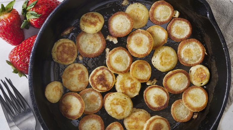 These cooked rounds of batter are wholesome, fluffy, and the perfect vector for real maple syrup. Plus, they don't really require special equipment to make — and pre-made pancake mix comes in a convenient package at the grocery store. The only qualm we have with pancakes is what to do with the leftover batter. If we accidentally have to play the back-and-forth game by adding more water or extra mix, or we just overestimate how hungry we are, we end up with a bowl of batter left over. And while it's important to let pancake batter rest, leaving it on the counter for too long — or worse, popping it in the fridge overnight as you rack your brain on how to use it — will cause all the carbon dioxide to escape, in turn rendering your batter useless.