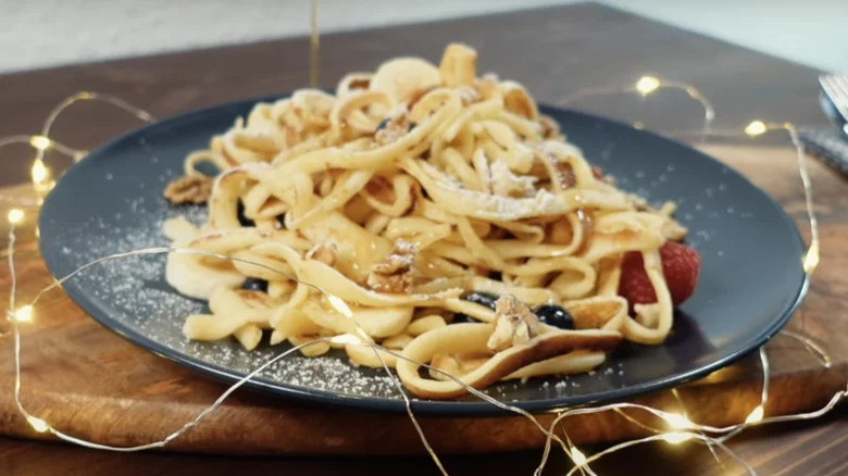 Before you get yourself all worked up, rest assured that this hack does not involve covering spaghetti pasta in pancake dough and dropping it in a deep fryer. Instead, it's merely a matter of cooking your pancake batter so that it resembles thin ribbons.