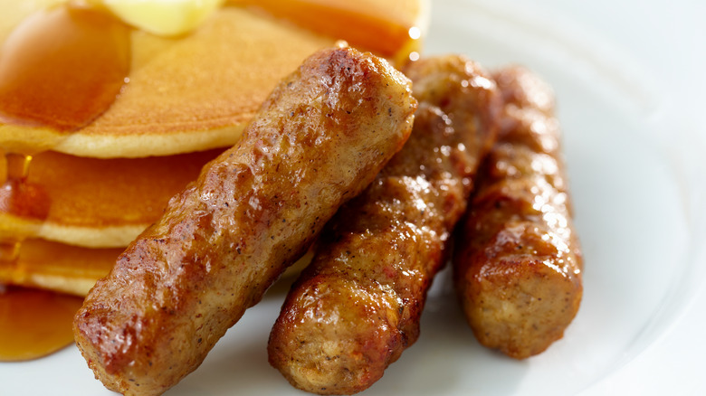 Breakfast sausage is much smaller in size than other types of sausage, but that's not the only thing that sets it apart. These succulent links have a distinct maple flavor that goes well with one breakfast food in particular: pancakes.