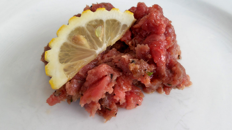 Tartare is a dish that elicits many opinions. It's often regarded as a luxury or delicacy plate, and, as it is served raw, it leaves many to wonder how — or why — it is safe to eat. In terms of nomenclature, meat-minded cooks mostly agree that there isn't a huge difference between calling it beef or steak tartare; even the history of tartare is up for debate. The longer you speak to those who enjoy the dish, the more diverse beliefs about it arise, including what cut you should ideally be using to make beef tartare.