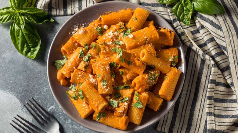 While any vodka will do in your homemade vodka sauce, there is one definite thing: It has to be vodka. Benoliel told Tasting Table, "The alcohol in the vodka is an important tool for enhancing the flavor of the other ingredients in the dish while adding that extra oomph that makes the sauce what it is." While you can still make a decent sauce without it, or even with a non-alcoholic vodka alternative, it wouldn't be a true vodka sauce — and it won't taste or look like it either.