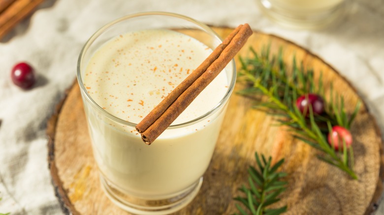 That said, don't toss those egg whites. Poe's family would whip them up into a frothy element that would be used to top off the eggnog, along with a sprinkle of nutmeg. If you like the idea of drinking like this great American writer but can't stand the thought of eggs, consider making a vegan eggnog that takes advantage of dairy substitutes like almond milk and cashews to bulk up the viscosity. And of course, if you want to enjoy this cocktail sans the alcohol, there are plenty of ways to add flavor to eggnog without booze that include additions like coconut cream, citrus, vanilla extract, and even ice cream.