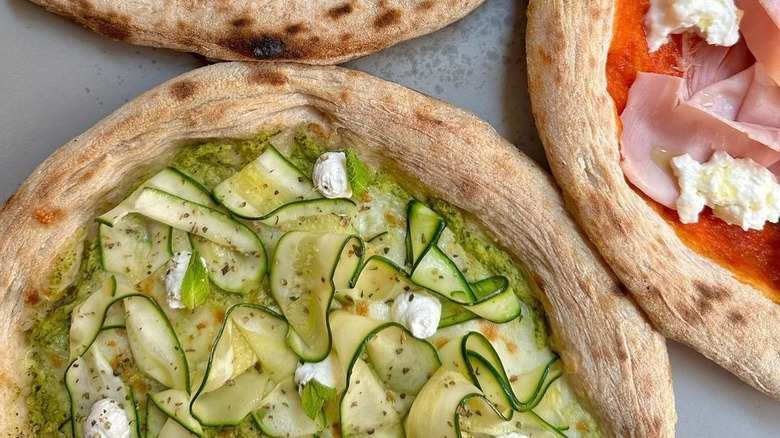 In particular, don't miss out on the combination of ricotta, chopped pistachios, and mortadella, another Bolognese delicacy. Equally tasty is the vegetarian pizza with zucchini cream, ricotta, lemon-marinated shaved zucchini slices, mint, and wild fennel. Didn't get enough pizza on your first try? Don't worry, you can always go back for more until you're full, or you can wander around the shared seating area and pick up some other snacks or drinks available at some of the other food stands.