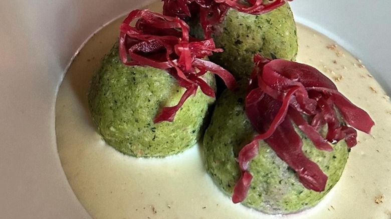 In general, chef Daniele Bendanti has drawn heavily from his childhood repertoire when putting together the menu. A case in point is a Bolognese take on classic canederli, a South Tyrolean dish, made here with mortadella, ricotta, melted Stelvio cheese, and fermented cabbage, all presented in an impeccable fashion. Indeed, the decor is another thing about this restaurant that goes beyond tradition. Unlike many casual trattorias, this eatery is decked out in sleek accessories and fancy touches like cutlery rests.