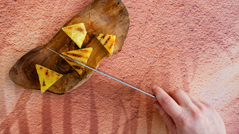 Slice grilled pineapple into wedges.