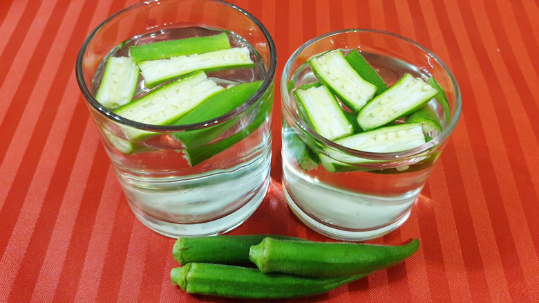 Some pretty outlandish claims make the rounds on the socials, but when it comes to drinking okra water, there may be some truth to back up some of the circulating reels. Also called lady's finger in some countries, okra can be pan-fried as a side dish, incorporated into curry recipes, stirred into simmering pots of shrimp gumbo, and used to infuse water. While some might squirm at the thought of this sometimes slimy ingredient floating in a drinking glass, the purported benefits of okra-infused drinking water include healthier skin, controlled blood sugar levels, and a boost in hydration and digestion.