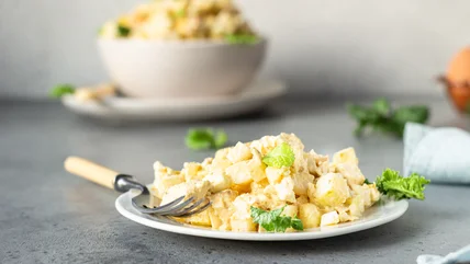 A common ingredient in Southern-style chicken salad, hard-boiled eggs provide more heft, depth of flavor, and a creamy, chewy texture. The yolks will offer a buttery richness to the savory chicken while the whites bring a burst of springy chew and more filling protein. You can chop hard-boiled eggs into large chunks or shred them into the salad, depending on the textural contrast you're looking for.