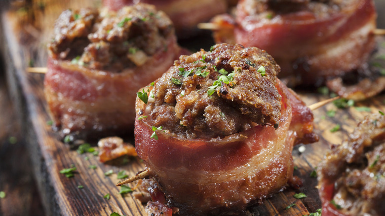 Speck's bold flavor and ready-to-eat format makes it especially useful as a garnish, but it's also cooked into dishes too. It's notably caramelized and stuffed in canederli, a beloved Italian bread dumpling. Cooked on a stove, it also makes for a delicious aromatic addition to stews. Or, speck can even be threaded onto a skewer and grilled. Plus, there are numerous raw applications, whether a porky garnish for rye spaetzle or the foundation of a charcuterie board.