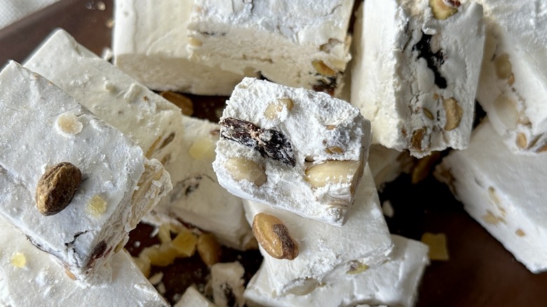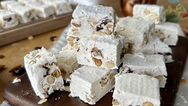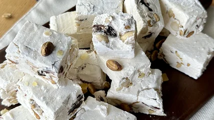 Try your hand at making this classic nutty torrone, an Italian nougat that features a meringue-like texture, dried fruit, and nuts.