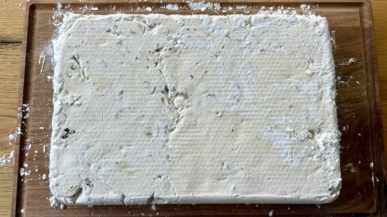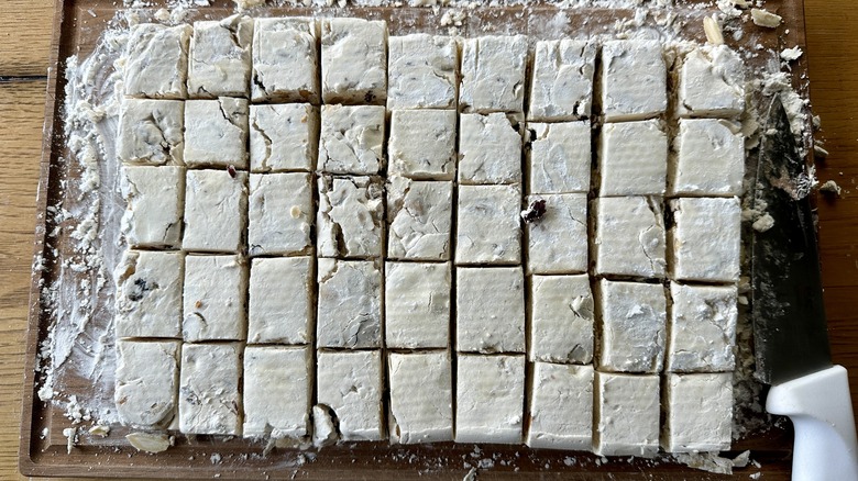 Sift to cover with remaining confectioners' sugar mixture. Use your hands to press the top of the candy to flatten.