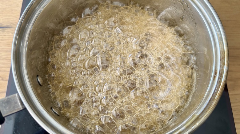 - Heat honey in a small pot over medium heat until mixture reaches 250 F. Remove from heat.