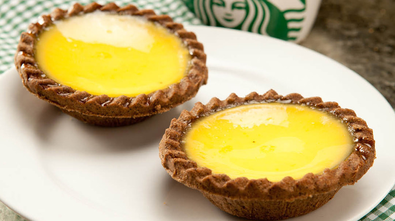 If you've thoroughly explored your local Chinatown, you likely know that egg tarts are an incredibly in-demand dim sum item, particularly in Hong Kong. Hong Kong-style egg tarts feature a silky smooth and glossy filling with a delicate buttery casing. Now, for a real deal egg tart? You'll need to travel to the country, where they're made fresh. Every bakery and restaurant in Hong Kong is apt to stock egg tarts, in fact, but Starbucks amps things up with a chocolate pastry-encased egg tart.