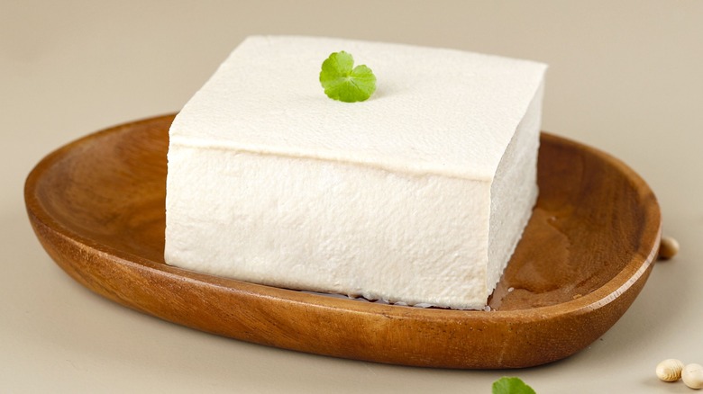 To make your silken tofu pass for eggs, it's not just going to have to look like them — it'll have to taste like them, too. Fortunately, you can opt for turmeric or mustard powder for the yellow-orange color and any form of umami for flavor. Black salt and nutritional yeast are recommended, but if you have any MSG on hand that will certainly do, too. From there, you can add in your chosen seasonings along with a 12-ounce block of silken tofu and ⅓ cup of flour to give it that airy texture before blending it all in your food processor until smooth.