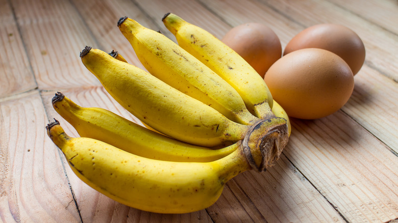 The main purpose of egg whites in many recipes, especially when making baked goods, is to act as a binding agent; that is to say, their job is to hold everything else together. Bananas are a fruit with a lot of moisture, but also with a thick, starchy consistency rather than a watery one, making them a good replacement for eggs taking on this role. The key here is to mash the bananas into a sticky pulp that will allow them to behave similarly to egg whites. One average-sized banana can replace roughly two large eggs, meaning this swap can easily be scaled to suit any recipe by substituting a 2:1 ratio of egg white to banana.