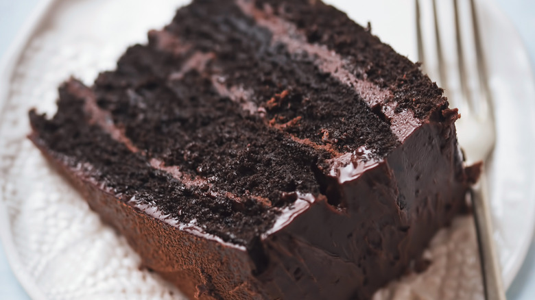 Red velvet cake just screams opulence. It towers over its dessert competitors, both literally and figuratively, and makes for a show-stopping dessert that eaters of all ages can appreciate. We ranked it among our top popular cake flavors because it has the puckeringly sour flavor of buttermilk that hits the back of your tongue, which is quickly coated with a thick cream cheese frosting. This is one dessert where the cake and the frosting are inseparable — which comes as both a blessing and a curse.