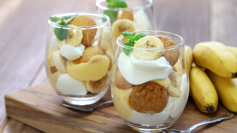 Banana pudding is a classic Southern dessert made with layers of plain vanilla pudding (not banana-flavored, as you would expect), fresh bananas, wafer cookies, and whipped cream. Our favorite thing about this dessert is that it can be made into a show-stopping trifle or set into individual glasses for serving. This treat is incredibly novice-friendly because you only have to whip up the instant pudding and use the other pre-packaged ingredients.
