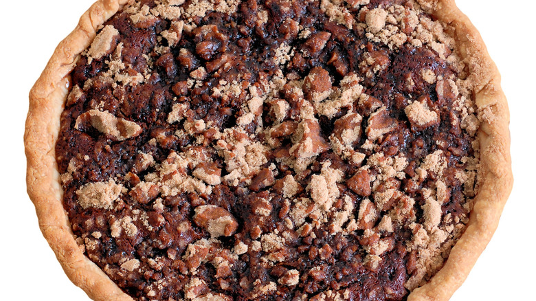 We give this pie some points against shoofly pie because it has some nuts to add extra texture — but it still doesn't alleviate the sugariness. The one thing it has going for it is that it's easier to make than a finicky custard pie.