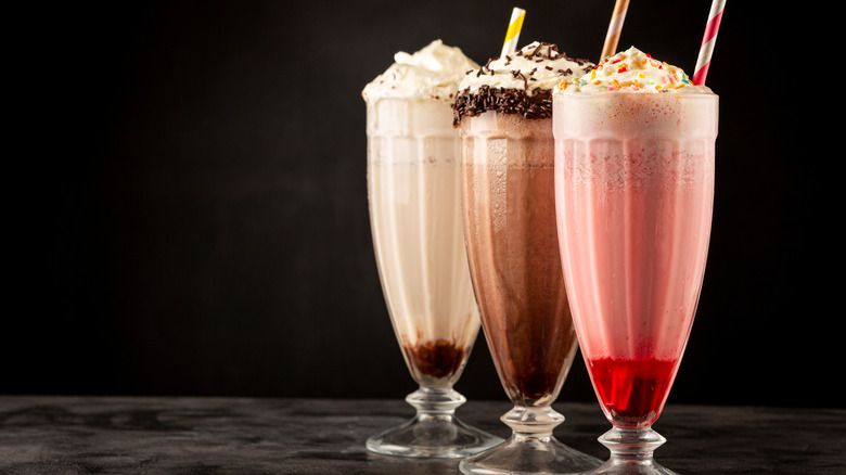 A milkshake wins novelty points because it's a drinkable dessert that is one of the easiest sweet treats to whip up. Throw any ice cream, milk, and whatever syrups or add-ins into a blender, whizz it together, and pour it into a glass, and you have an on-the-go dessert at your fingertips. Of course, you can also grab a glass at your local diner — or anywhere where homestyle breakfast food is aplenty.
