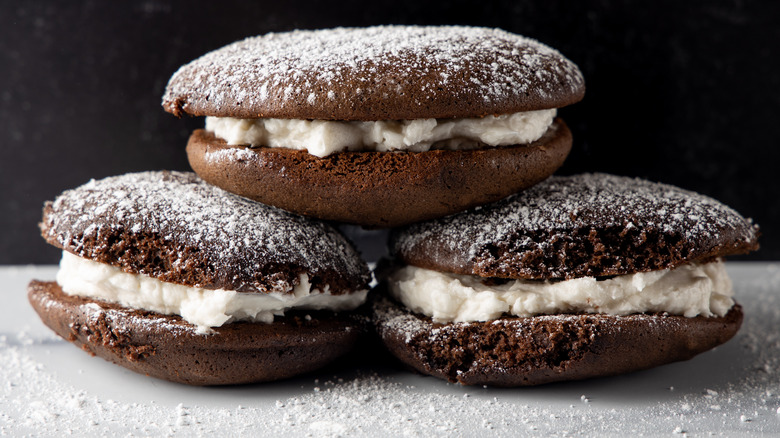 New Englanders are probably ecstatic to see a whoopie pie make its way onto this list. These treats aren't actually pies but are instead made of two soft chocolate cakes sandwiching a whipped cream filling. Although chocolate is the most common cake flavor, it can also be made with red velvet or even carrot cake batter.