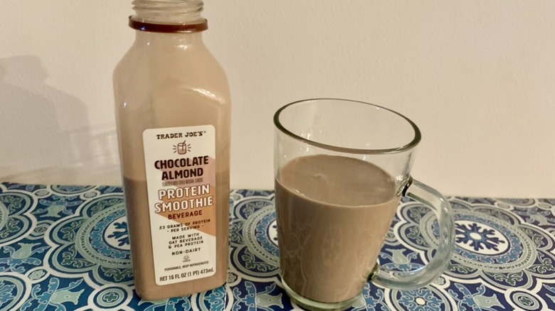 Protein is essential for staying healthy — but it's also essential for staying full. The easiest way to hit your target protein levels while also getting to work on time without a bunch of dishes in the sink is to grab a protein smoothie. One and done. Trader Joe's Chocolate Almond Protein Smoothie Beverage is ready to go, the most portable and low-effort means to a fueled day.