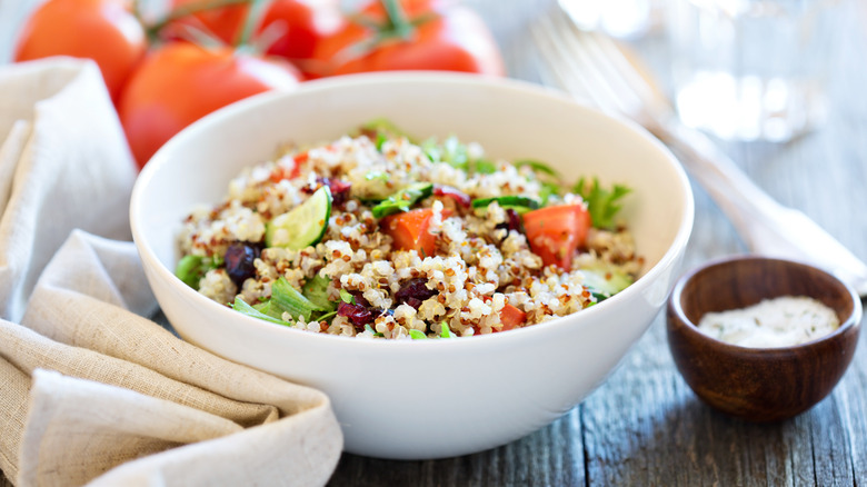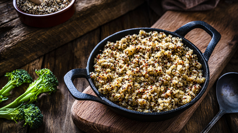 Although quinoa is a seed, it's often swapped in for rice thanks to its many health benefits. Quinoa boasts more fiber and protein than the grain, with plenty of minerals, too. Though it can stand in for rice, it doesn't share the same slightly sweet flavor. Thankfully, there's nothing a few spices can't fix when cooking quinoa.
