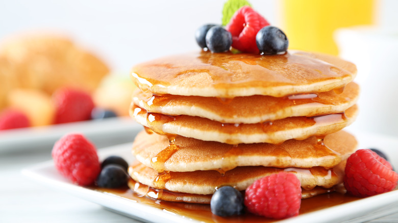 Just like with any pancakes, coffee-infused pancakes will taste delicious with a helping of maple syrup or a spread of butter — or both. But, if you want to really go all the way on the coffee flavor, then you may want to consider opting for a spread of homemade coffee butter instead. Or, you could spread a layer of pumpkin spice butter for a take on a pumpkin spice latte in pancake form.
