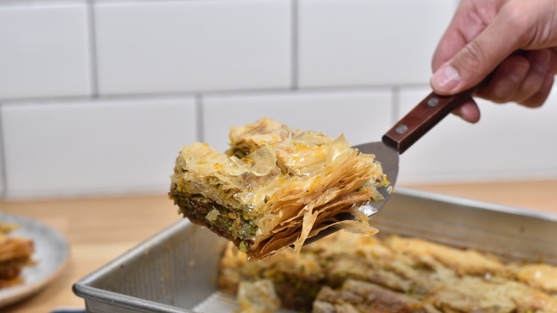 Dozens of baklava recipes exist around the world. And while ingredients might change from place to place, the main recognizable elements of this Middle Eastern dessert offer thin sheets of phyllo dough layered with nuts and sweeteners like honey or sugar. Whether walnuts, pistachios, or hazelnuts are used to make this tempting treat, however, a hint of citrus can help some of the more flavorful notes sing. As Tasting Table recipe developer Alexander Roberts shared in her pIstachio and orange baklava recipe, zest from an orange and a spoonful of orange blossom water is all that is needed to create a fresh take on this classic favorite. "We'll add some cinnamon for a warm spice note, and use both orange zest and orange blossom water to brighten the sweetness of the baklava," Roberts writes.
