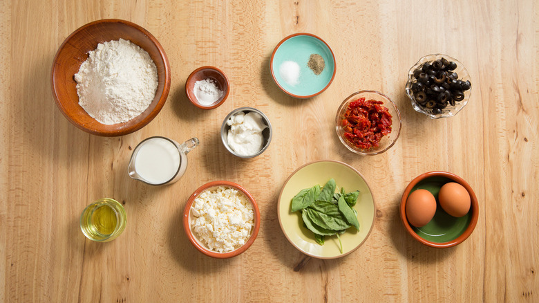 Gather your sun-dried tomato and feta muffin ingredients