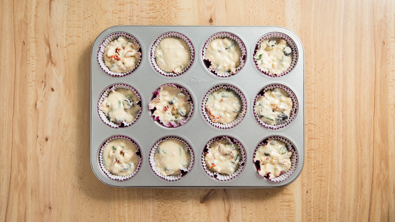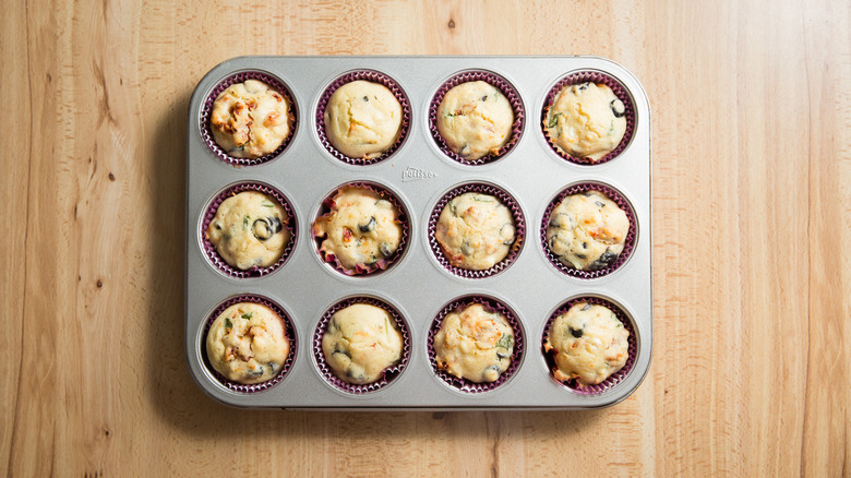 When you picture muffins, perhaps you see a plateful of sweet and juicy blueberry muffins or a batch of decadent chocolate chip muffins hot out of the oven. We know these are delicious, but muffins don't have to be sweet. There are countless ways to make savory muffins as well. Think of the kind of ingredients you would put in a frittata, a quiche, or even on a pizza. Savory muffins are quick to make and can add more vegetables to your meals. While some recipes may contain a small amount of sugar, completely savory muffin recipes are easy to find.