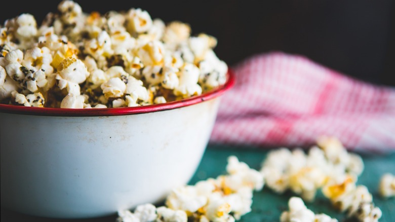You don't have to be passionate about home cooking or creating vegan alternatives to cheesy and meaty dishes to reap the benefits of nutritional yeast. It's so easy to incorporate the flakes or power into ready-made meals and snacks for a fun and nutritious boost. One food that you should consider adding nutritional yeast to is popcorn. Just make sure to coat the fluffy kernels with butter or oil before adding a generous sprinkle of nooch so it sticks.