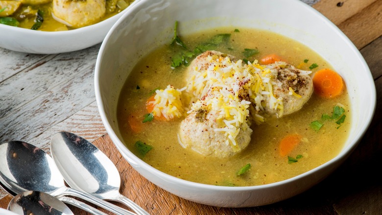 Some plant-based eaters still seek out the flavors of beloved animal-based dishes, including stocks and broths. This is where nutritional yeast's umami flavor can be an asset. While providing a cheesy flavor may be nooch's most celebrated role, its potential in a plant-based kitchen goes far beyond that. It can easily give vegan chicken bouillon a kick of flavor because the glutamic acid meshes well with other ingredients. Some even liken the flakes to the dehydrated roast chicken skin.