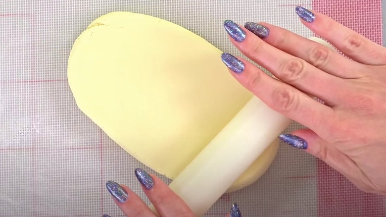 Rolling pins are commonly used to roll out dough, but Sideserf takes it in a slightly different direction. She starts by cutting a preliminary shape from a cake. The next step is adding the molding surface. She explains, "I roll it out and then I place it on top of the cake and then I sculpt it." Sideserf makes it abundantly clear that the edible clay (aka modeling chocolate) is the key to her creations and adds, "If I wasn't able to have that rolling pin on hand — sometimes I even use it to sculpt and shape — if I didn't have that rolling pin, I probably wouldn't even be able to use the product."