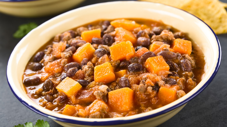 At the heart of any quintessential comfort meal is steaming hot food that exudes as much warmth and familiarity as it does flavor. Needless to say, stews fit the bill perfectly. With countless recipes passed down through generations, this dish comes with unparalleled versatility. No matter what you're in the mood for, rest assured there's a stew to match it. When you're craving something hearty and intense but not too overwhelming, find the unexpected answer in a pot of stew filled with canned black beans and pumpkins.