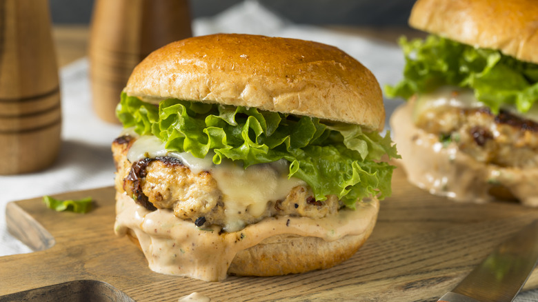 Gone are the days when canned food equals lackluster flavors. It all depends on the brands, of course, but in canned chicken, you'll still find some of the white meat's most beloved features. Its relatively neutral taste and slightly salty edge offer a lighter take on burgers, one that allows endless creativity. With just how well chicken absorbs flavors, this mildness can be transformed into anything you want with a pinch of herbs and spices. From sweet, spicy, and savory to other flavor nuances, it lays the perfect ground for all kinds of personalized touches.