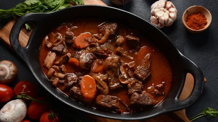 You might pair braised beef with prepared horseradish or horseradish sauce, but fresh also works — just check for these signs when you buy fresh horseradish at the store. This option is strongest in flavor and spice, so use it if you like more of a kick. For 5 pounds of beef, such as brisket, you might only need ¼ cup of freshly-grated horseradish to add to the base with the broth and other liquids. You'll likely have leftovers of the root vegetable, so don't forget to store horseradish in the best way to maintain its freshness.