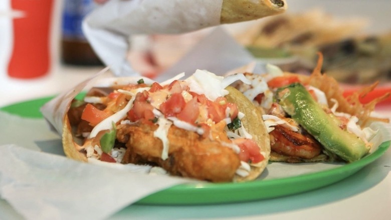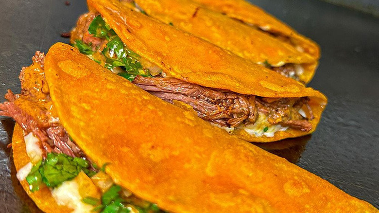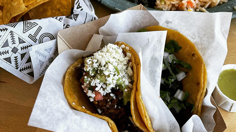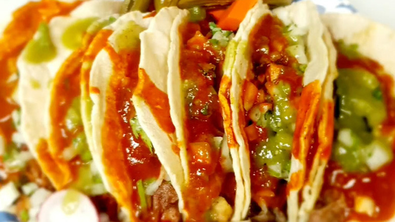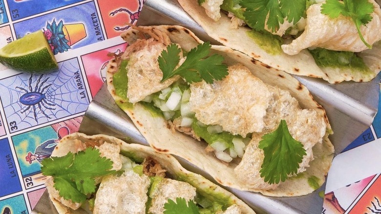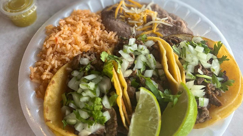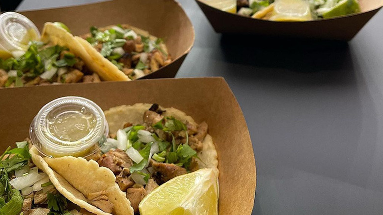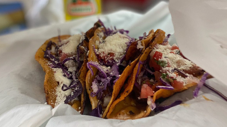 The tortillas here are made in-house. Tacos, as listed on Abuela's Tacos' online menu, include a choice between classic meat fillings, like asada, barbacoa, and chicken. Diners can also have their tacos with lengua, otherwise known as beef tongue, and chicharron verde, which is a pork belly stew that often serves as taco filling. The most distinctive part of the restaurant's menu is proclaimed at the top of its website: "Exclusive Home of the Hot Cheetos Taco." These tacos actually incorporate Hot Cheetos into the tortilla, and are described by many reviewers as a must-try. Portions here aren't skimpy (possibly to a fault, some reviewers do consider the homemade tortillas a hair too thick), and the price for one taco starts at $2.99. Abuela gets bonus points for being a favorite local resource for taco catering.