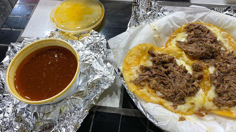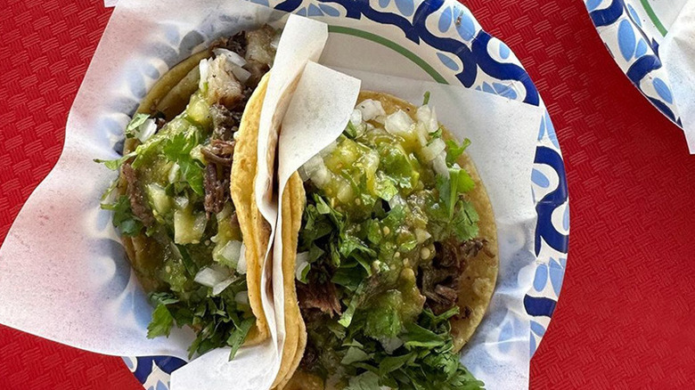 The quesobirria here is lauded online, and reviewers especially appreciate the accompanying side serving of consommé, which is a flavorful meat broth used in different variations across the world. The handmade tortillas hawked here are also a selling point and a fan favorite of the El Tacontento fare. The tripas tacos at El Tanconento are referred to by some reviewers as the best in town. If you want to do a taste test to prove this theory, it luckily won't break the bank: Prices at this taco truck are refreshingly reasonable. Tacontento, indeed.