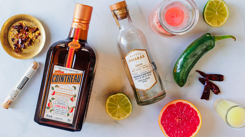 Gather the ingredients for this spicy grapefruit mezcal margarita