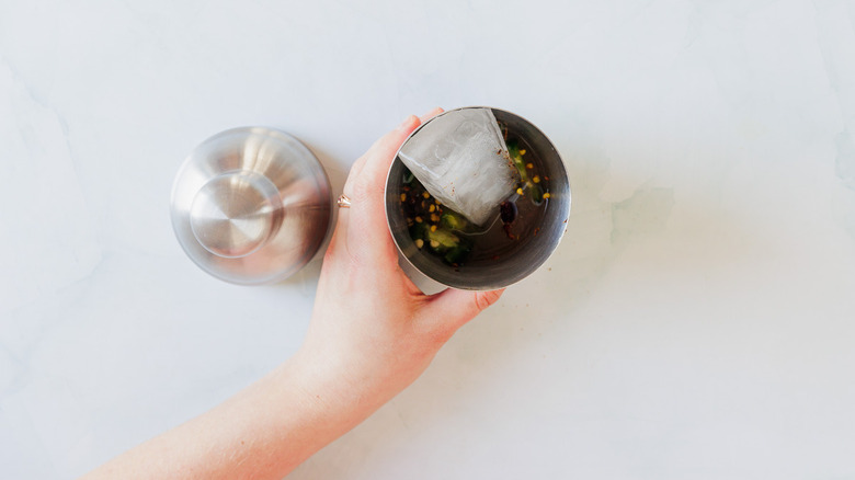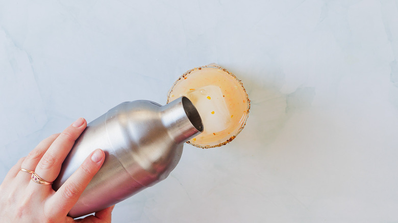 The spiciness of this spicy mezcal margarita can be easily adjusted to suit your heat tolerance. The recipe calls for a combination of crushed dried chipotle peppers and sliced jalapeño peppers, which contribute to the cocktail's kick. If you prefer a milder drink, you can reduce the amount of crushed chipotle peppers or omit them entirely. Chipotles pack a smoky, intense heat, so using less will tone down the spiciness. Additionally, you can adjust the amount of jalapeño slices you add to the shaker — keep in mind that jalapeños can vary in heat level, so taste them first and adjust as needed.