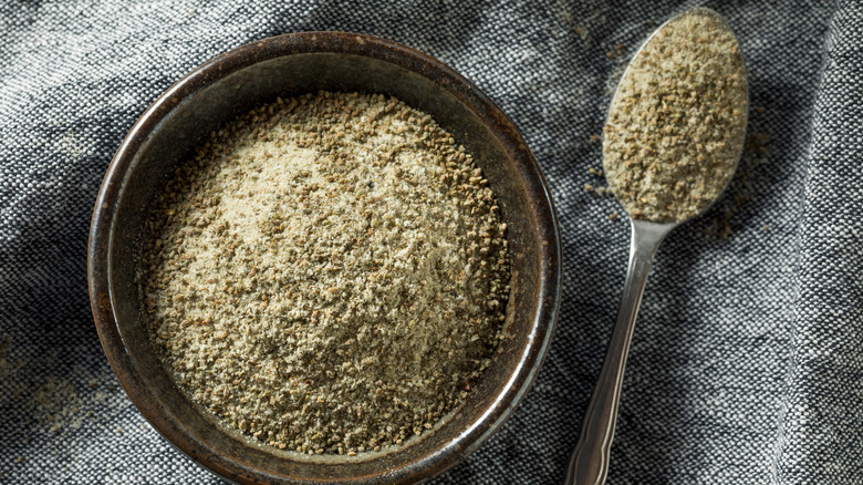 Salt is a must-have ingredient for baked potatoes, even if you're not yet comfortable with venturing into more unconventional toppings. But instead of just grabbing the jar of Morton salt from your spice cabinet, use a sprinkle of celery salt for an aromatic boost. Celery salt is complex; it has punchy, peppery notes combined with a subtle floral flavor that will give your baked potato an edge.