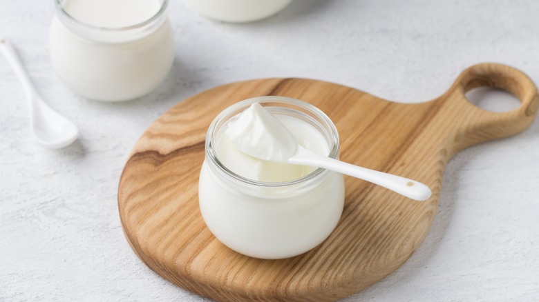 This Italian soft cheese has a similar texture to that of cream cheese. Some minor differences set the two apart — mostly that mascarpone is slightly more sweet and acidic. But mascarpone's thickness and creaminess give it a texture that's like a cross between butter and sour cream. Considering these are two of the best toppings you can put on your baked potatoes, it's reasonable to think that mascarpone would be a terrific addition, too.