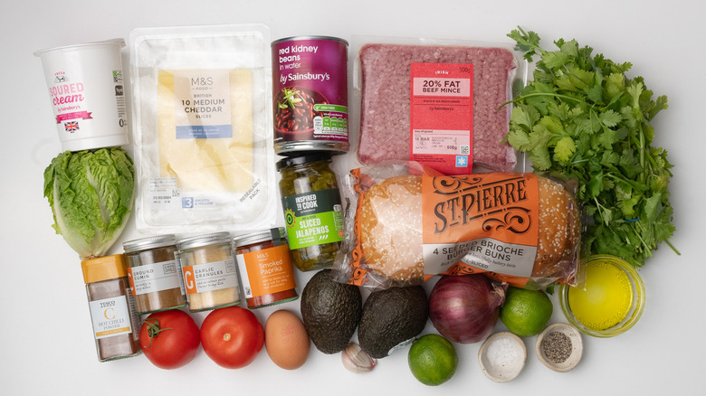 Gather the ingredients for the beef and bean nacho burgers